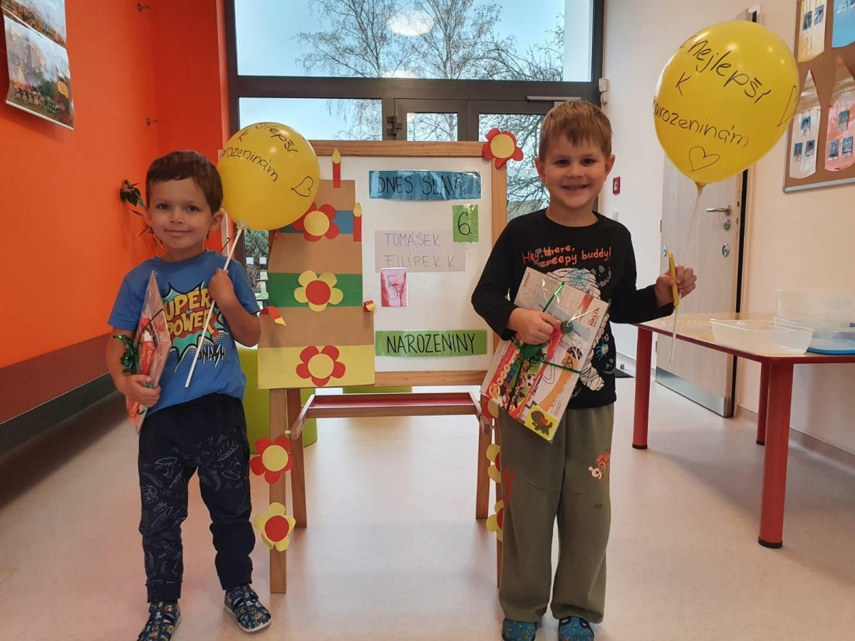 Filípek a Tomášek oslavili narozeniny s kamarády ve školce.